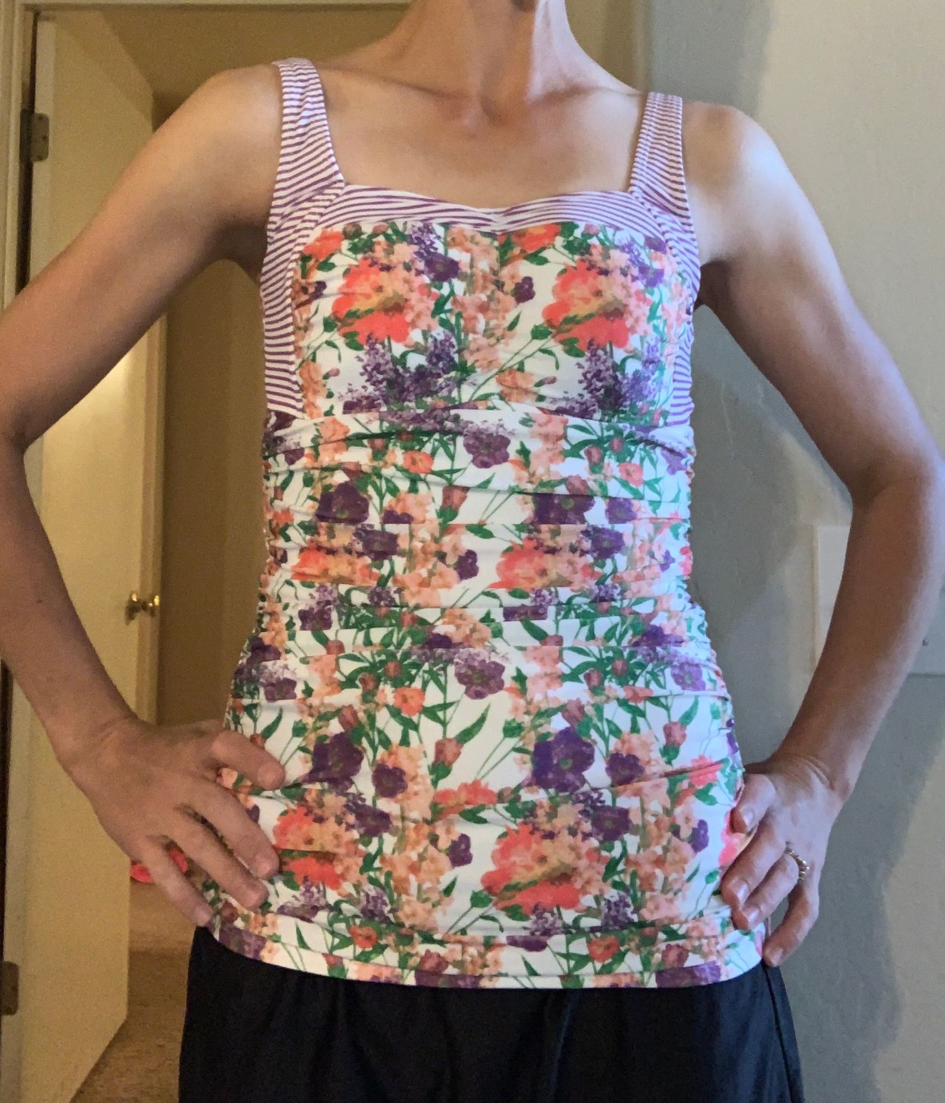 Sweetheart Ruched Tankini Top - Purple Floral Stripes - FINAL SALE - LOW STOCK