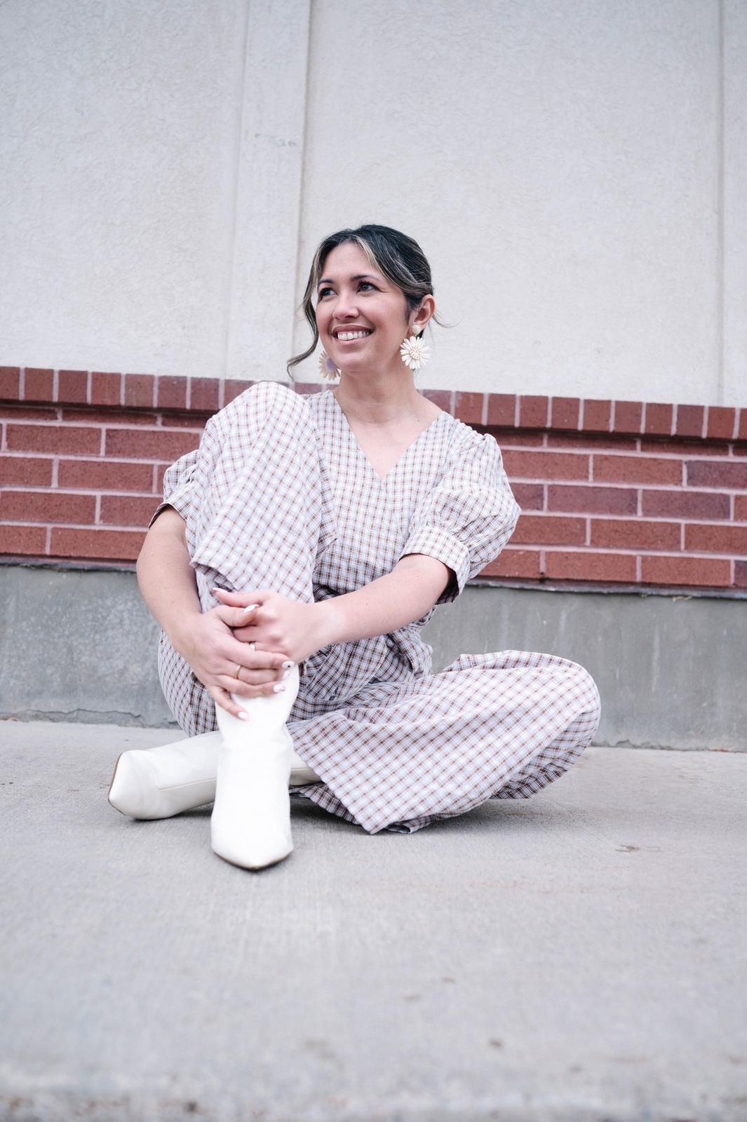 I’m absolutely loving everything about this jumpsuit, to start the gingham print and color combo is the cutest! It’s easy to put on and fits so nicely. I love that it has pockets also and the wide legs are perfect. It has a snap on the front and it’s great to keep it nicely close to it’s nice and modest.
