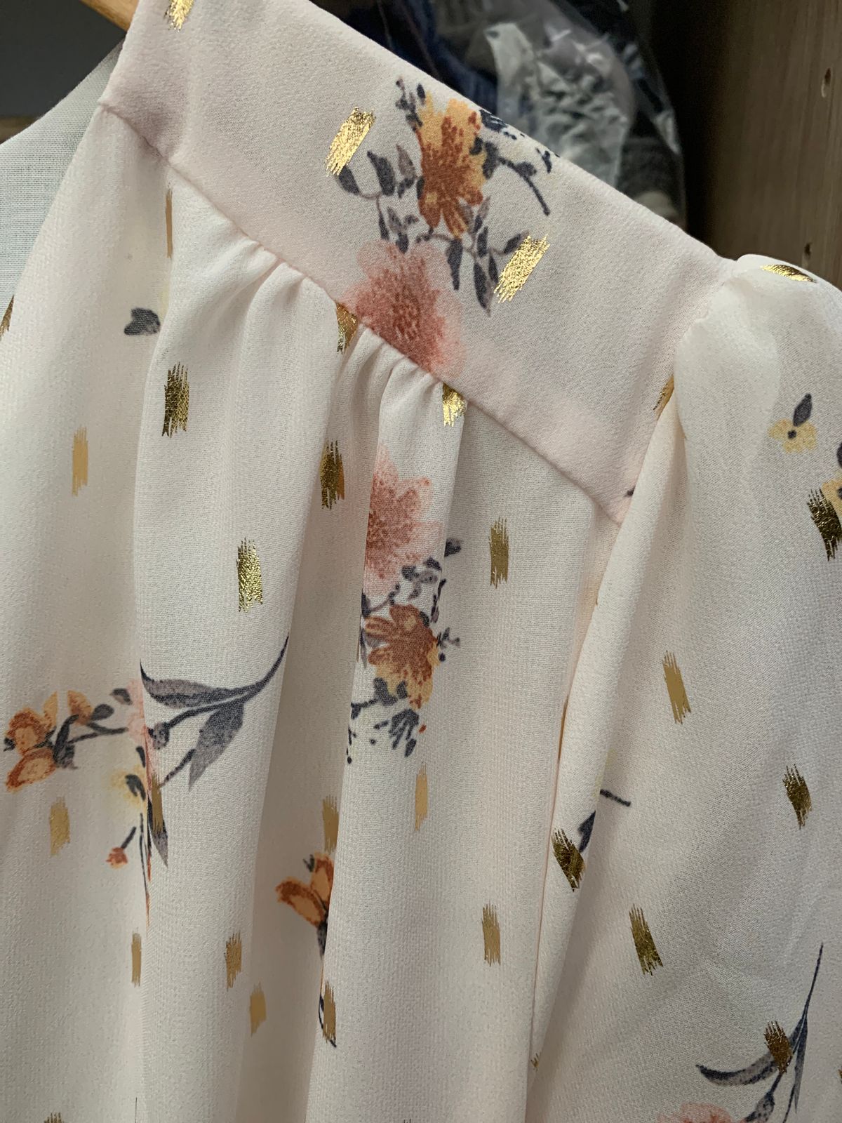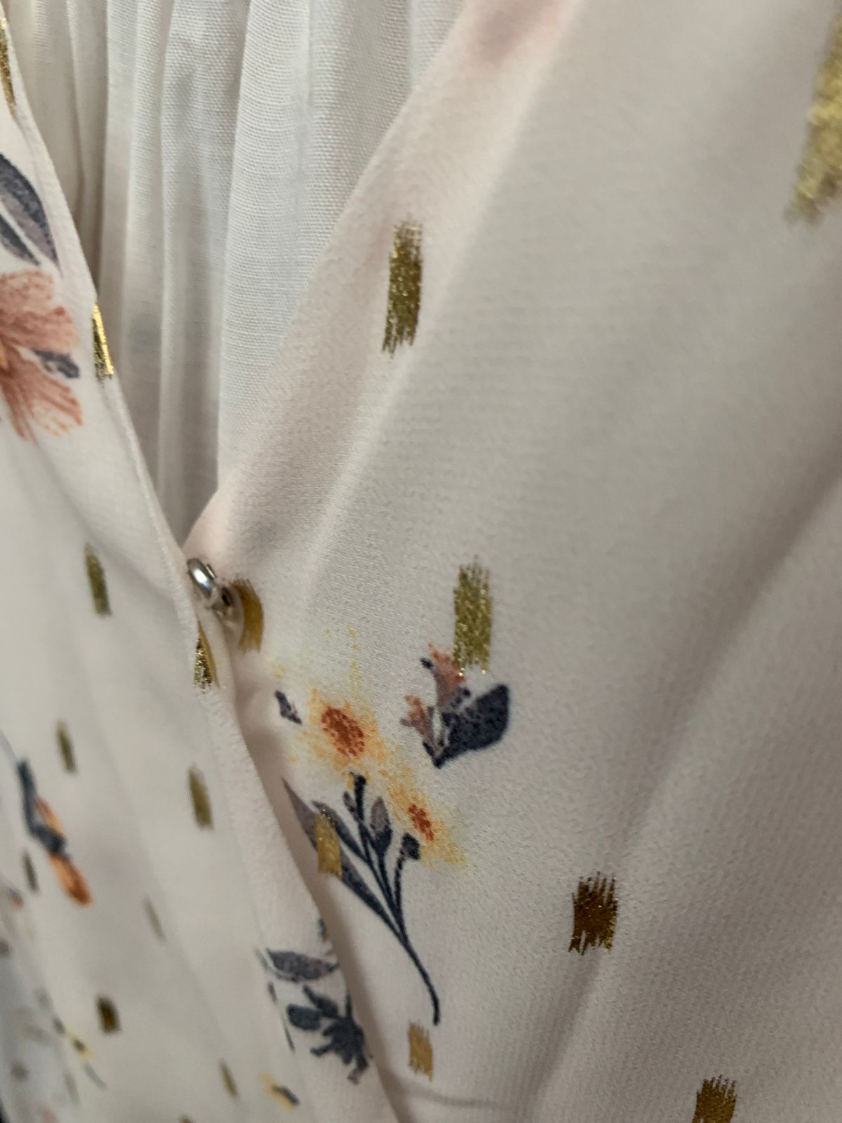 I love wearing this. I can wear it with sandals or tights. I do need to wear an undershirt since the sleeves are sheer and the v is a bit low but I run cold so that doesn’t bother me. The wrap stays closed and I just love wraps. Thank you for making one so beautiful and with long sleeves