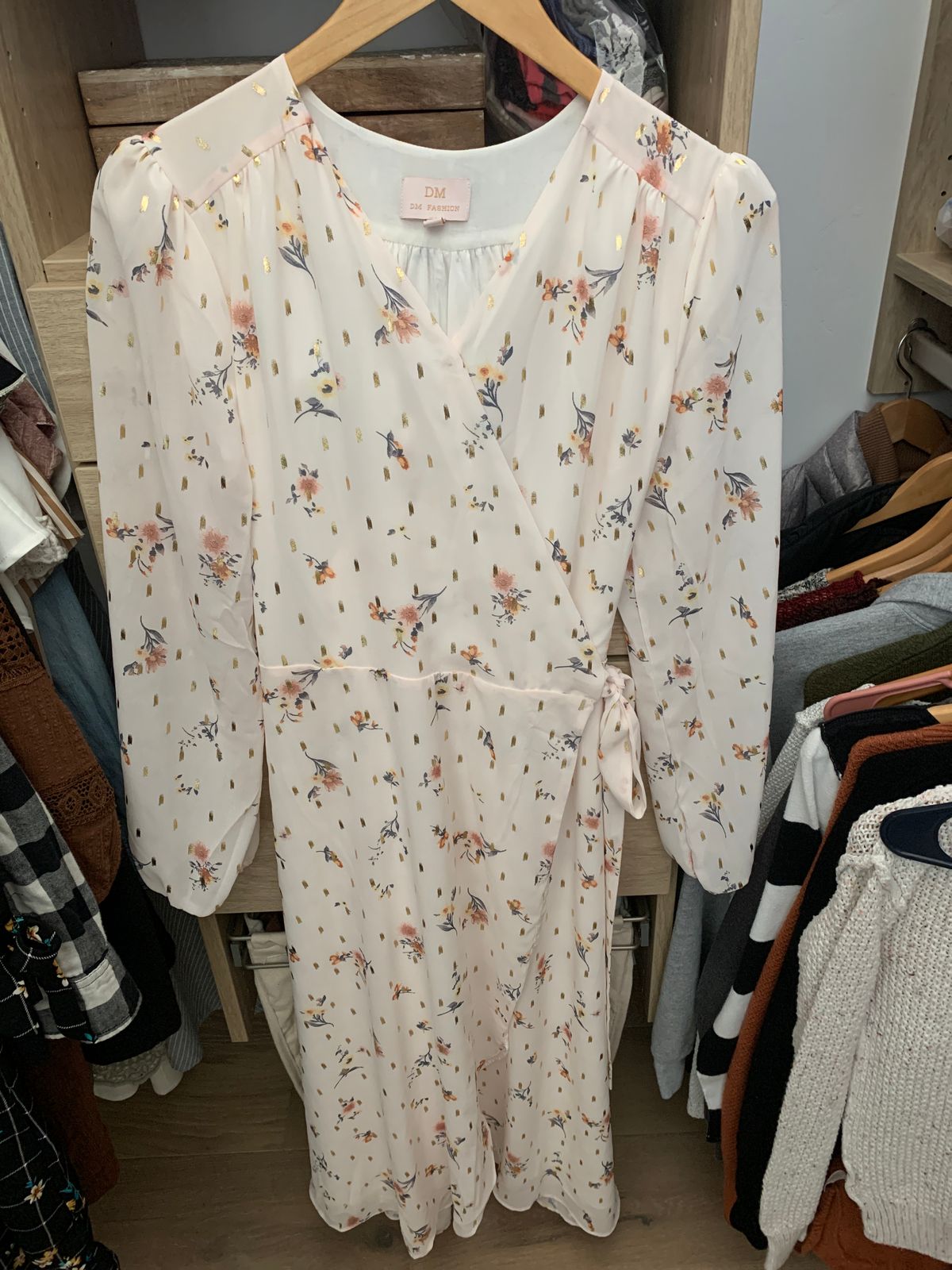 Our popular DM Exclusive Hillary dress is back in a new print! We cannot keep this DM Design in stock! A true wrap design that is elegant and timeless, this dress is perfect for the holidays, events, church or weddings! Also features a DM Exclusive print with gold gilding accents that set off this print as one of a kind! A DM design that minimizes and flatters all body shapes!