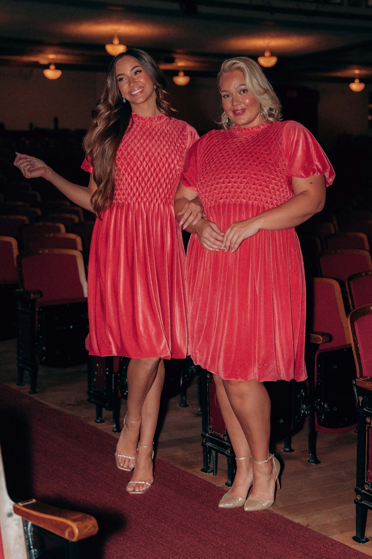 A design that was inspired by European designers over 400 years, with a modern twist! A Harlequin Check Pattern, bubble skirt and sleeves, buttery velvet, and a hot pink tie in back! This design has everything you would want in a fun and flirty dress. This dress is a show stopper and looks amazing on everyone!
