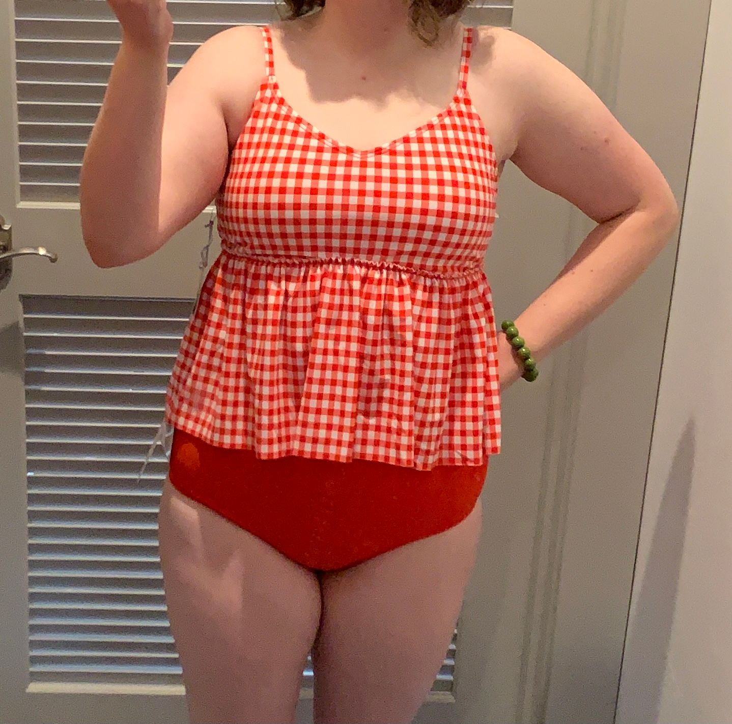 I’ve been eyeing this suit for a LONG time and it did not disappoint. It doesn’t just fit- it fits well! The style is flattering, the cups are sewn in, and the straps are both adjustable and comfortable. So secure and so cozy, all at the same time. I’m 5’5”, 163 lbs, 36B bra size and chose a large top, and a large high-waisted bottom.
