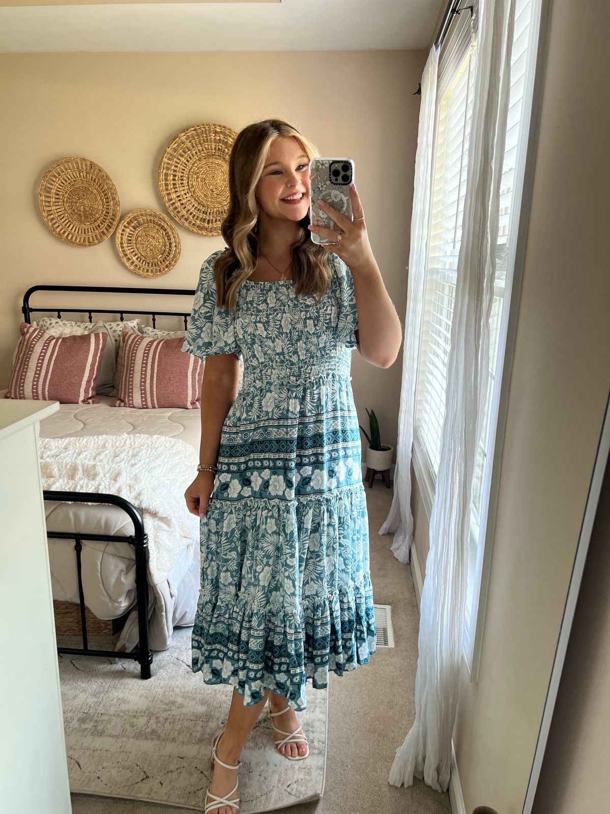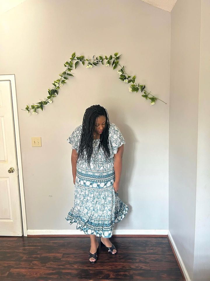 I am in the middle of a medium and a large so i sized up so it’s not too tight. I could have gone down to a medium but I didn’t want it to suck me in. It’s a perfect church dress! Got so many compliments! I love that it’s fully lined but also super breathable! I’m 2 months postpartum and the first time since having my baby that I felt pretty and confident! I’m 5’10 160lbs for reference