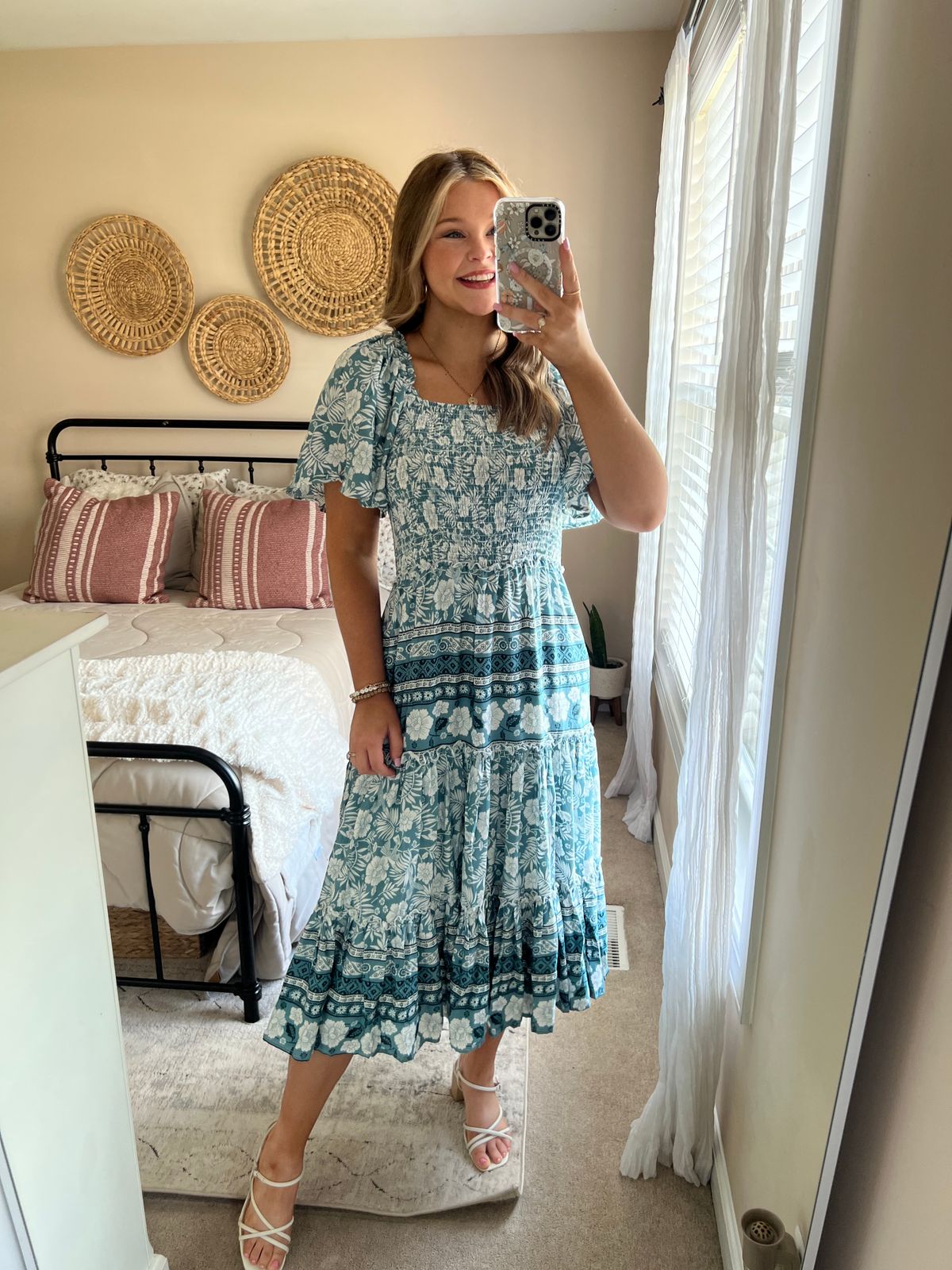Dress is the perfect length and fits nicely in all the right places. Love the color.